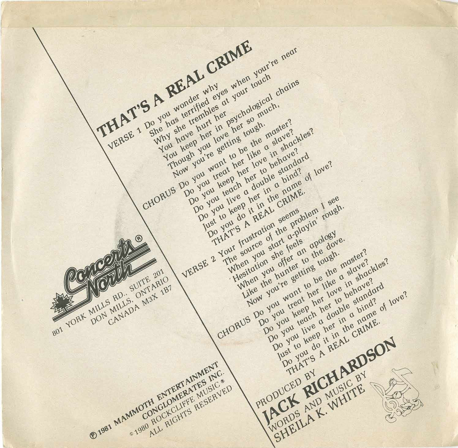 Words and music by Sheila K. White Produced by Jack Richardson