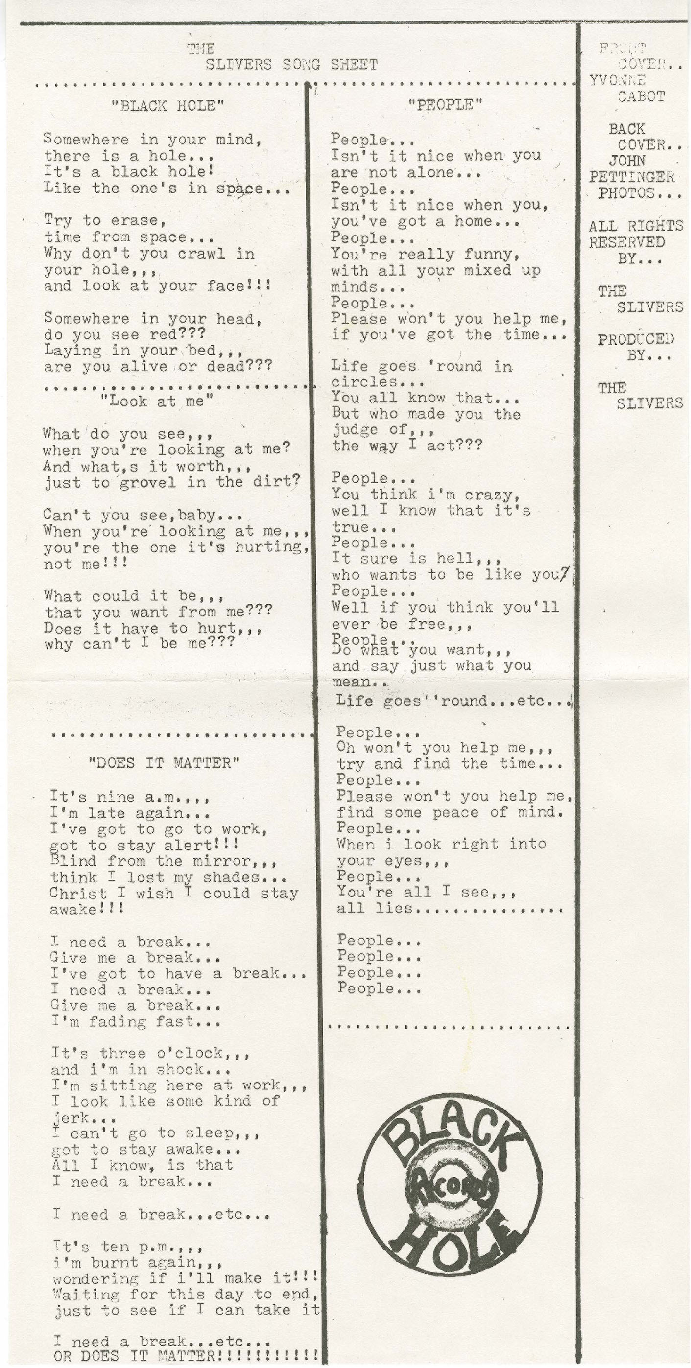 The Slivers formed in 1981 in Victoria B.C., Canada. They released just one single during their time together in 1981.
