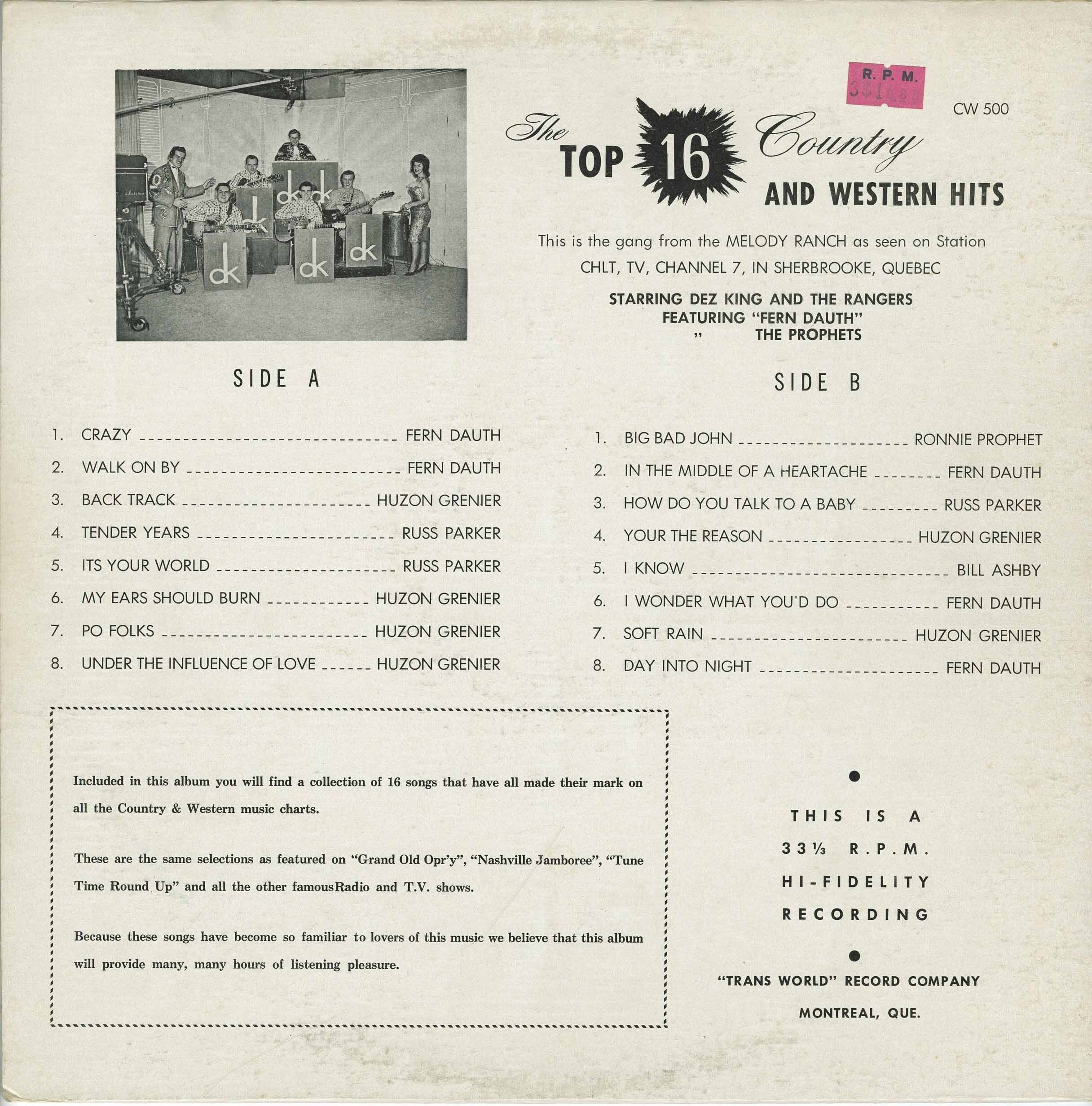 Dez King And the Rangers - The Top 16 Country And Western Hits