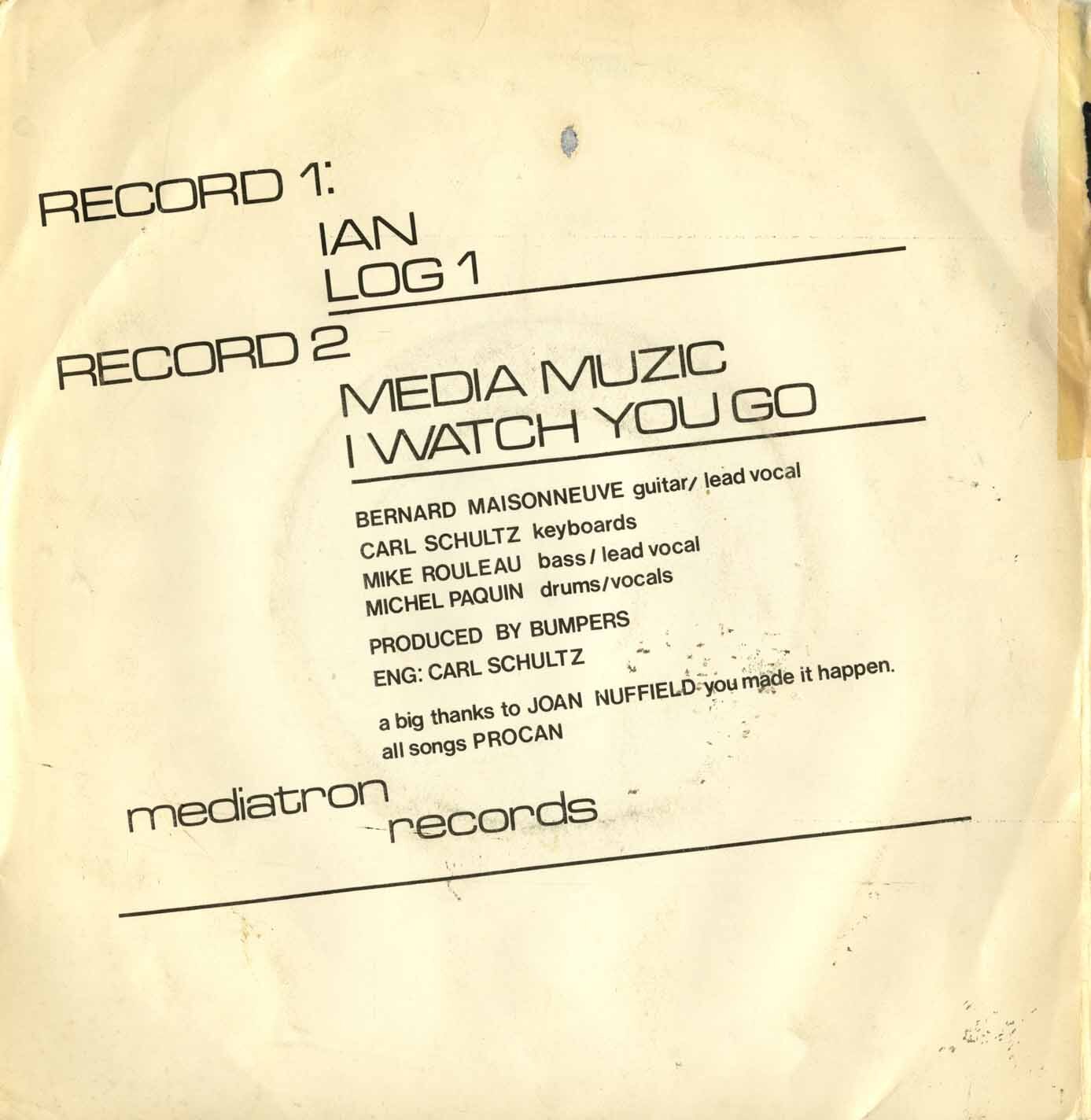 Bumpers - Media Music/ I Watch You Go /Ian/ Log 1 (picture sleeve)