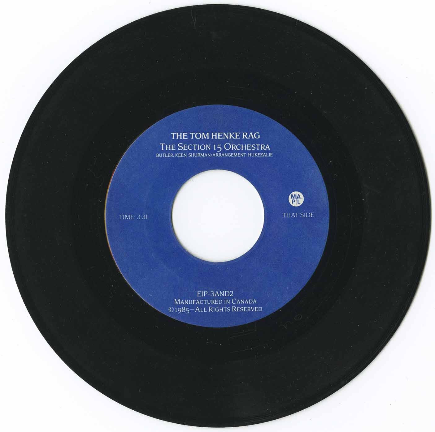 Section 15 Orchestra - The Ballad of Tom Henke b/w The Tom Henke Rag (instrumental)