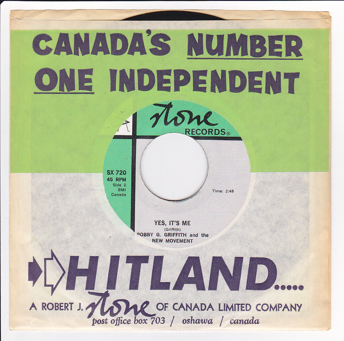 After relocating with his family to Dryden, Ontario, Griffith eventually settled in Toronto, where he entered the city’s club circuit in the mid-1960s. During this period he fronted The New Movement and made his first commercial recordings. Two singles document this early phase: “You’re Married Now Jack” b/w “Cheater, Cheater” (1966, Amcan AMCAN 128) and “Tough Guy” b/w “Yes, It’s Me” (1967, Stone SX 720). Both releases are credited to Griffith as songwriter and place him in a straightforward mid-1960s rock context, years before his later adult contemporary and broadcast-oriented work. Neither record received sustained promotion, as both labels were short-lived, and the project did not continue beyond these two releases.