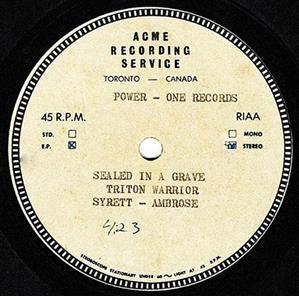 Triton Warrior, named for sea-god Neptune’s son, devised a self-styled “gravel rock,” hammering it out during practices in Fromstein’s family basement. The youths signed justice-of-the-peace notarized waivers, as to legally play local bars and clubs, touring only occasionally outside a 40-mile Toronto perimeter. Recordings commenced at Sound Canada before 1972’s end, resulting in a 2,000-copy run of singles on Vintage Records. “Satan’s Train” took the A-side, with the Fromstein-sung, Mama Moose-sourced, and heavily Sabbath-inspired “Sealed in a Grave” as flip. An errant extra “T” on the 45’s label consigned Triton/Tritton Warrior to eternal pronunciation Hell. But Fromstein’s job with Canada’s 140-store Sam The Record Man chain did afford national distro to the band’s lone release.