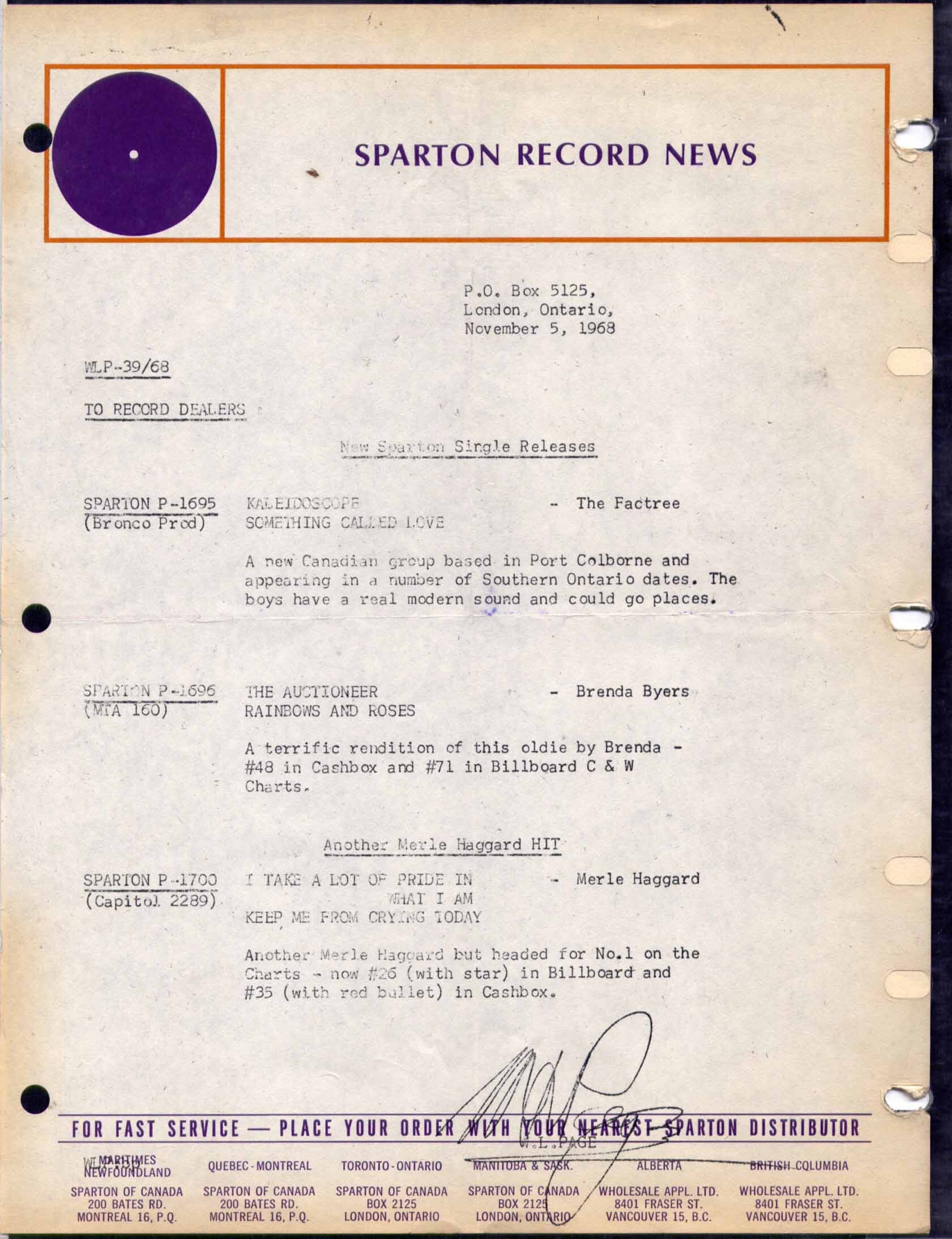 Label: Sparton Records P 1695