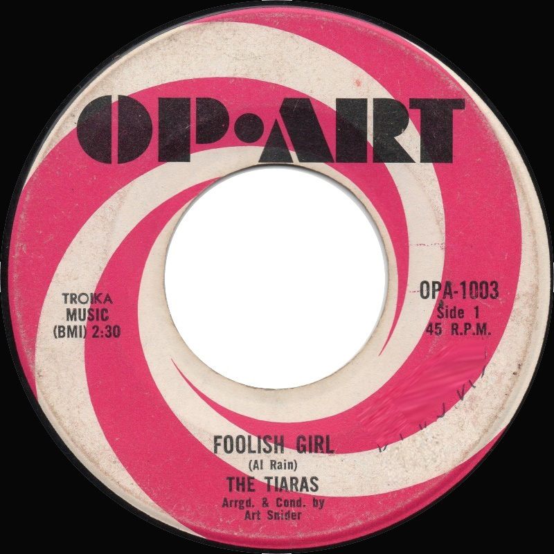 An elusive gem from the golden age of Canadian soul, Foolish Girl b/w Surprise by The Tiaras is one of those rare 45s whose scarcity is matched only by its historical importance. Released in 1968 on the tiny Op-Art label, the single showcases a Toronto-based girl group that included future Canadian music royalty: Jackie Richardson, Brenda Russell, Colina Phillips, and Arlene Trotman. Though they left behind only a handful of recordings, The Tiaras' legacy lives on thanks to their remarkable later careers and the enduring appeal of this overlooked soul classic.