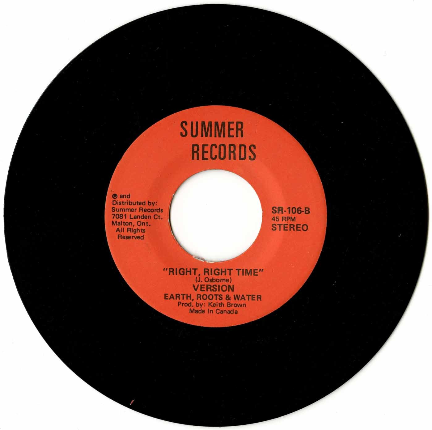 Earth, Roots And Water - Right, Right Time b/w Right, Right Time Version
