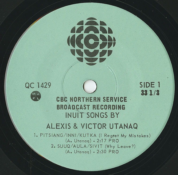 CBC Northern Service and Related Recordings, Inuit northern songs, Rock Room, Northwest Territories, Arctic Inuit Pisiq songs, Indigenous Canada, 1970's