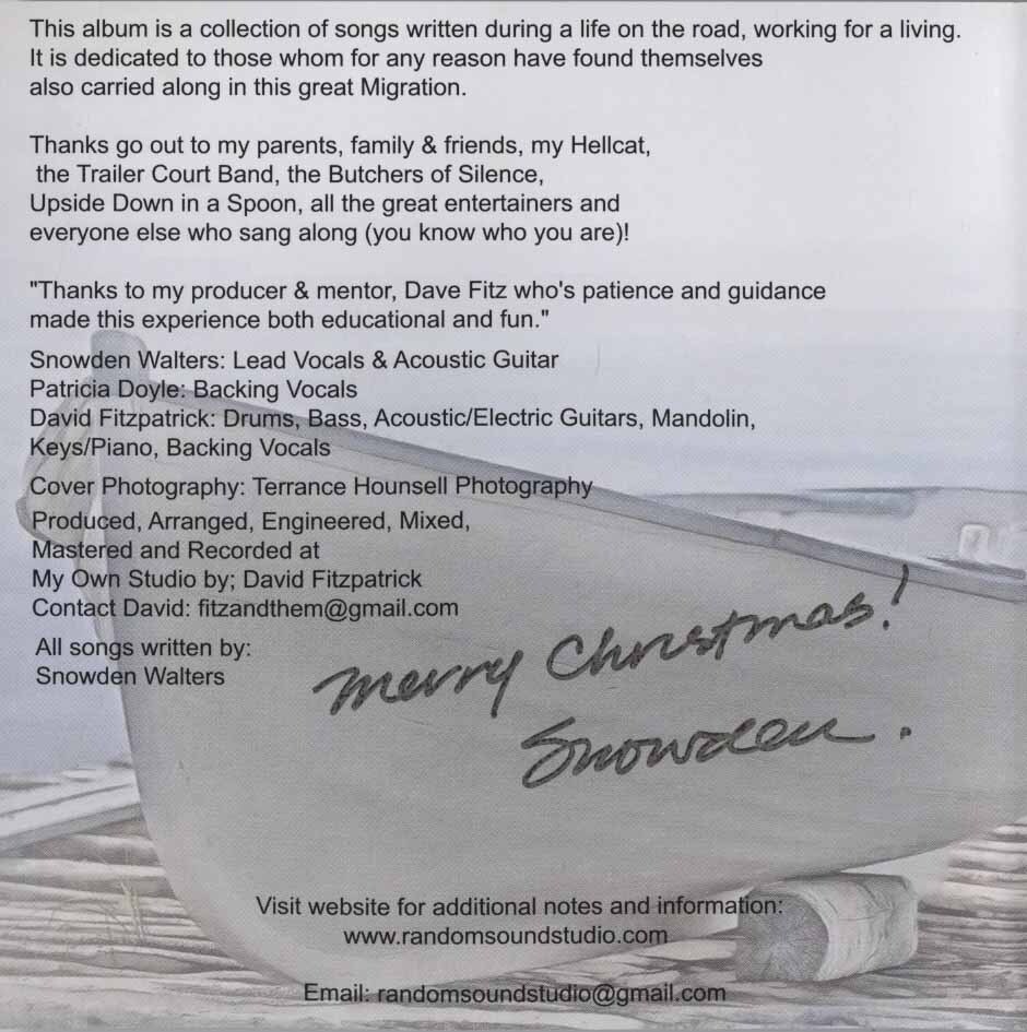 https://www.randomsoundstudio.com/store/p6/CD_%27Migration_Songs%27_-_Snowden_Walters.html, http://www.fredsrecords.com/site/shop/snowden-walters-migration-songs/
