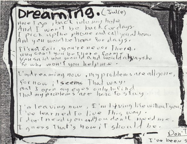 All songs and lyrics by Rick except tracks 3 and 6 by Julie.