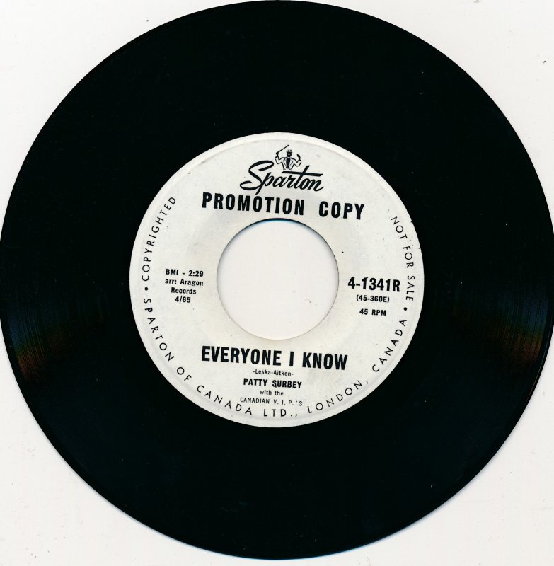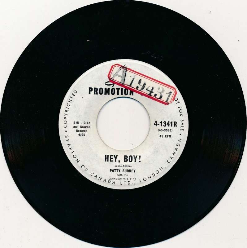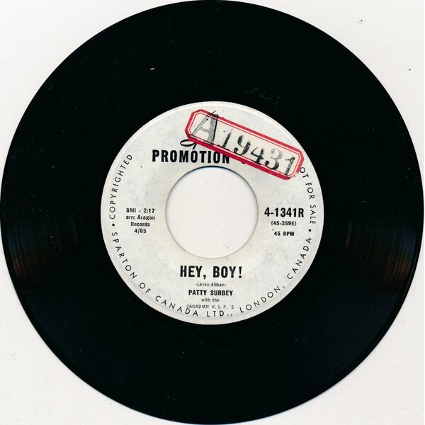 Surbey and the Canadian V.I.P.’s followed the Aragon release with ‘Hey Boy’ backed with ‘Everyone I Know’ in 1965. The single was recorded in Seattle at Audio Recording, the long-running studio operated by engineer Kearney Barton, whose approach shaped much of the Pacific Northwest’s early rock sound. Though ‘Hey Boy’ was initially recorded for Aragon and may have had a short internal pressing, no verified Aragon copies have surfaced. The master was subsequently leased to Sparton for wider distribution. Surbey’s material from this period was co-written with Jeff Aitken, who also managed the Canadian V.I.P.’s and likely oversaw her involvement with the group.