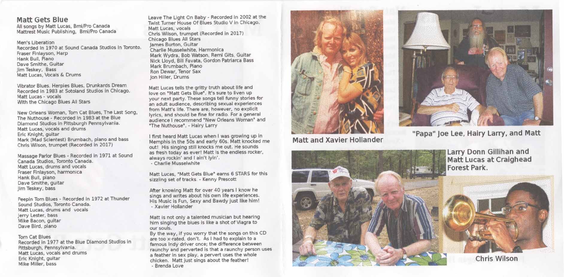 His new album, Matt Gets Blue, was recorded between 1970 and 2017 and features contributions from old friends James Burton on guitar and Charlie Musselwhite on harmonica and finds Matt singing songs drawn from his amorous experiences with titles like “Massage Parlour Blues,” “The Peepin’ Tom” and “The Nuthouse.”