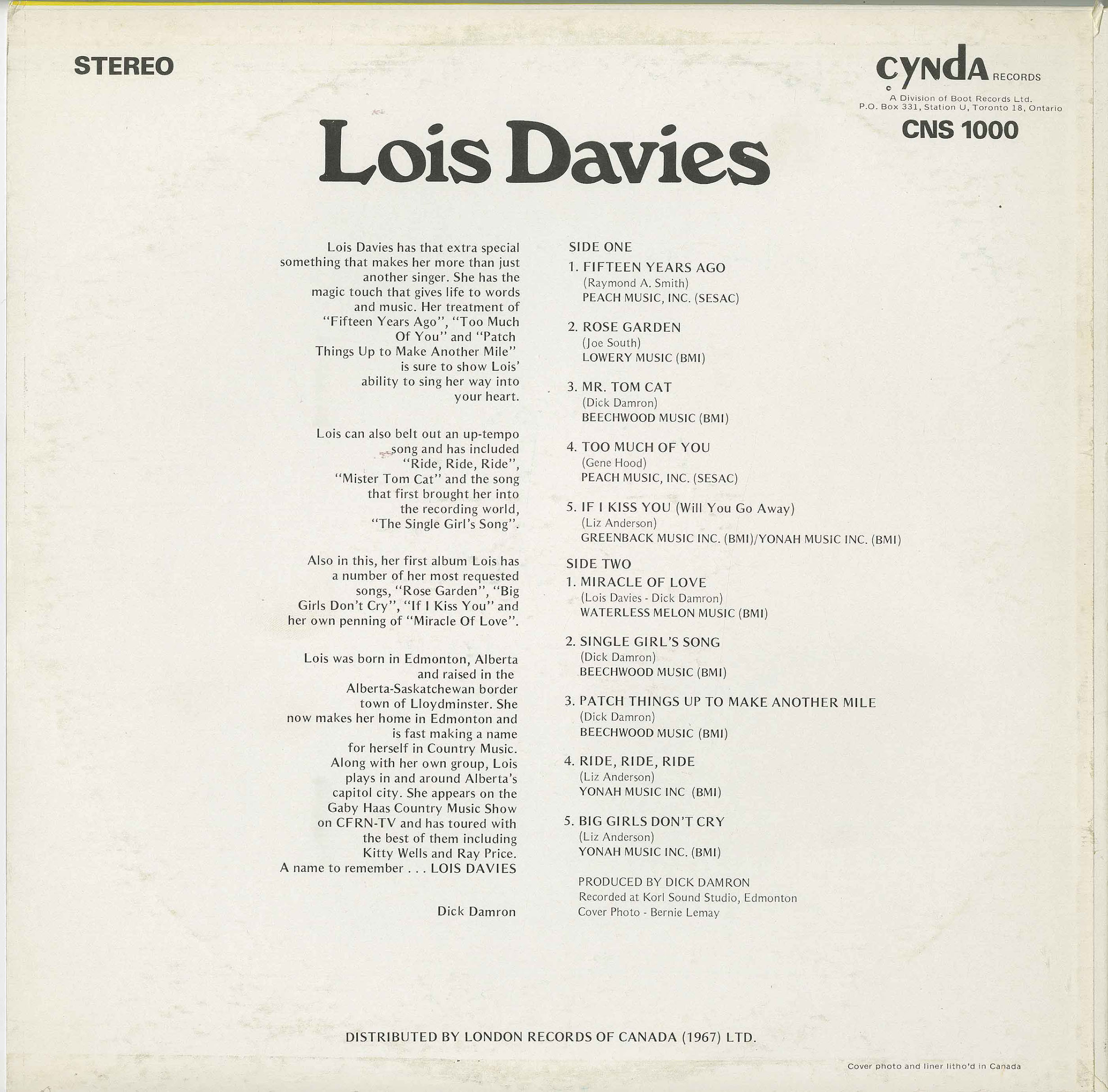 Country & Western, Canadian Women in Song, Alberta, 1970's