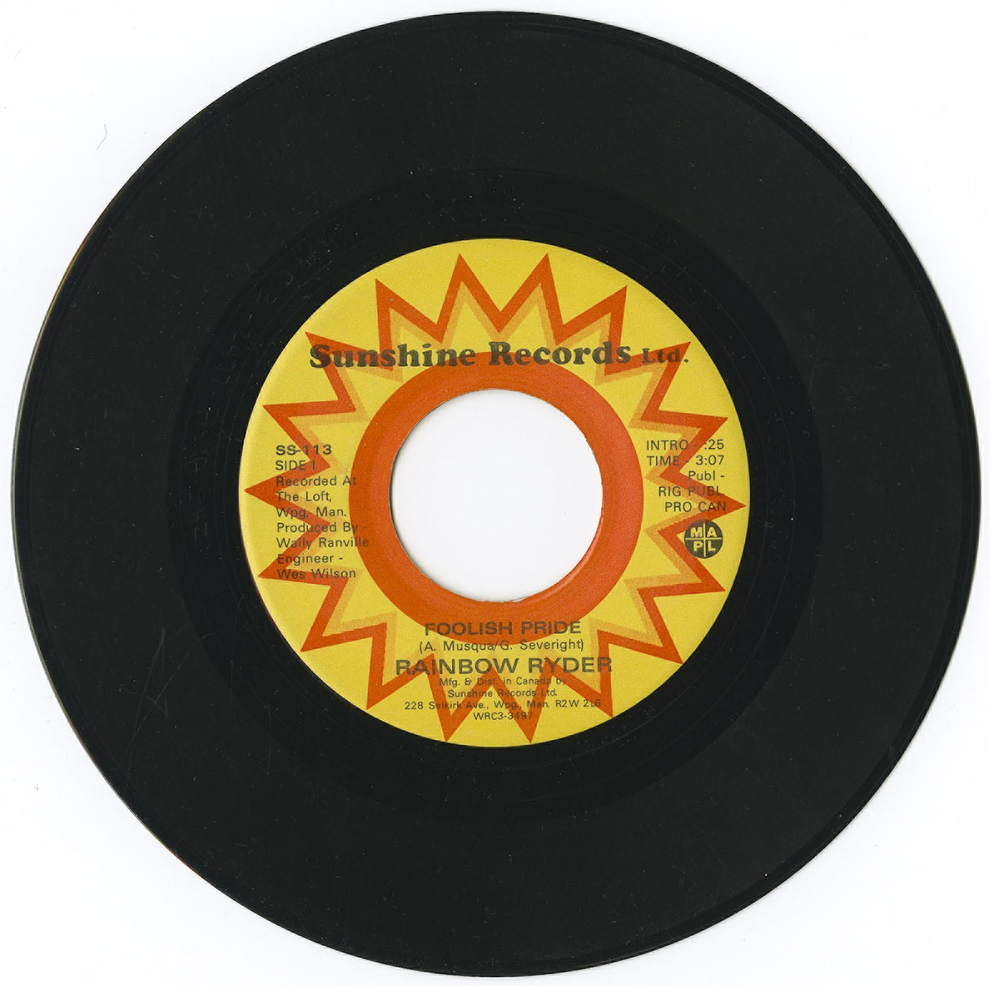Rainbow Ryder - Foolish Pride b/w Heard it in a Love Song