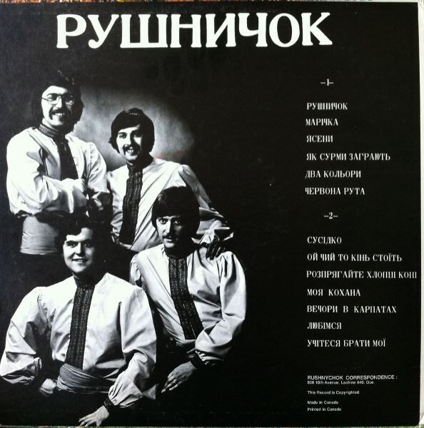 In their time together, Rushnychok recorded five albums comprised of 63 songs. The albums were all issued under the band's own SAGE Promotions record label (SAGE came from combining their names' first initials). The band's album sales could be counted in the tens of thousands - a rare feat compared to other North American "ethnic" acts. Amazingly, the albums also had a large impact in Ukraine where copies had to be secrectly snuck in.