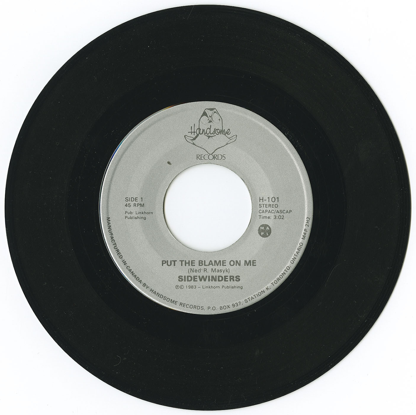 In 1983, the Sidewinders recorded a batch of studio tracks engineered by Rich Dodson at Marigold Studios in Toronto. Two of those recordings became their defining single: “Put the Blame on Me” b/w “Cryin’ Heartache Misery” (Handsome Records H-101). The A-side, in particular, introduced what would become Ned’s signature writing style—direct, emotionally clear three-chord country poetry delivered with a towering voice and downtown urgency. The single remains one of the earliest and most important recorded documents of the Queen Street country movement that would follow.