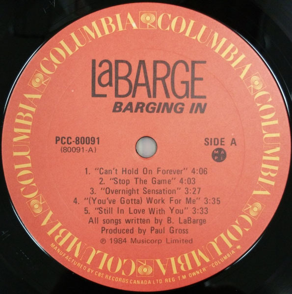 By the early ’80s he decided to strike out on his own. With budding producer Daniel Lanois behind the console, LaBarge recorded “Dream Away” (1981), a shimmering, radio-ready single that still enjoys airplay. Anchored by Jim Vallance on drums and Jeff Jones on bass, it was a masterclass in AOR craft and hinted at what was possible if LaBarge ever committed fully to a solo career. That possibility arrived with Barging In (Sony, 1984), his debut LP, which earned him a Juno nomination for Most Promising Male Vocalist.