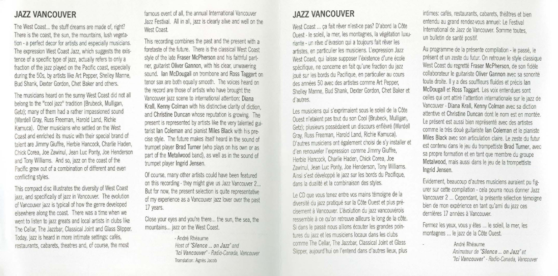 Jazz, British Columbia, VA VANCOUVER, 1990's, The Vancouver Jazz Scene