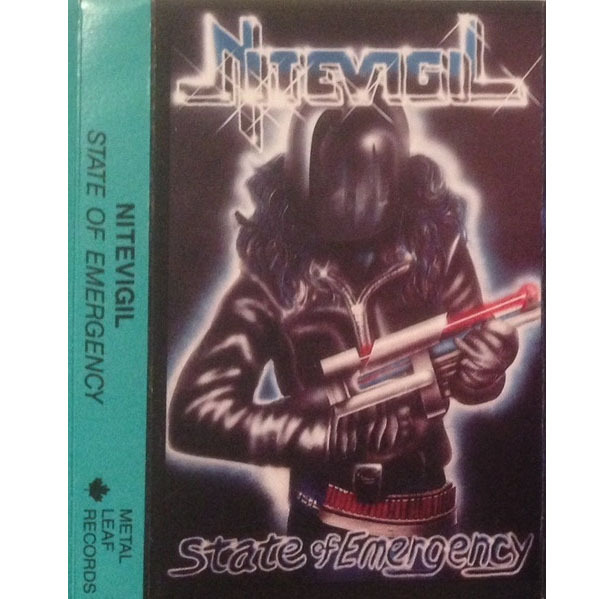 The end of 1987 saw the first big release for Nitevigil, a four song E.P. titled State Of Emergency. Recorded at the famed Mushroom Studios in Vancouver, it was released on their own label Metal Leaf Records and was only available on cassette. Through tireless self promotion and without the help of the internet, the E.P. reached underground radio stations, magazines, and newspapers where it was received with great reviews worldwide.
