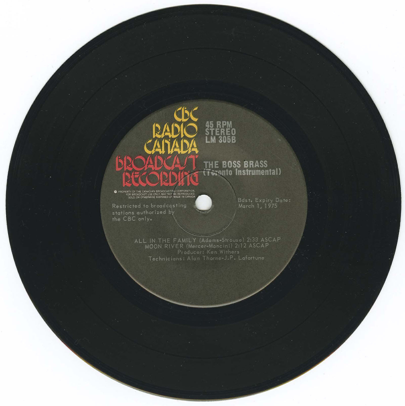 That vision became reality in 1968 with the birth of The Boss Brass, a sixteen-piece ensemble of Toronto’s finest studio musicians. The group’s sound was bold and unmistakable: four trumpets, four trombones, a pair of French horns, and a rhythm section, with no saxophones at first. In 1970 McConnell added a full woodwind section, and by 1976 the band had grown to twenty-two members. The result was a powerhouse outfit that set a new standard for big band music in Canada.