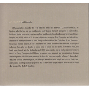 November 2018 – The Al Purdy Songbook celebrates the work of an iconic Canadian poet. Along with its sister project, the film “Al Purdy Was Here,” it was inspired by campaign to save and restore Purdy’s A-Frame home as a writing retreat for a new generation of artists.