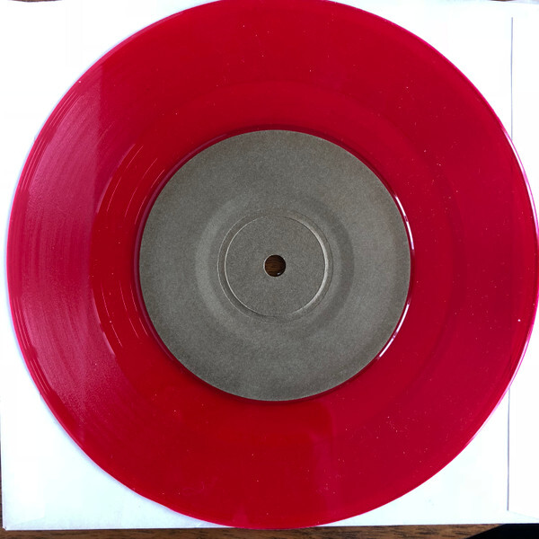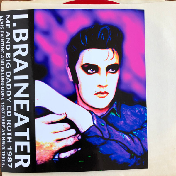 Red vinyl 7" with gold labels in an unmarked sleeve. Some copies are signed in felt pen "I Braineater" or "Jim Cummins". Some have recently been sold with a photo of a painting done by I Braineater of Elvis.