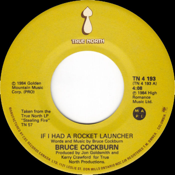Cockburn, Bruce - If I Had a Rocket Launcher b/w Maybe the Poet