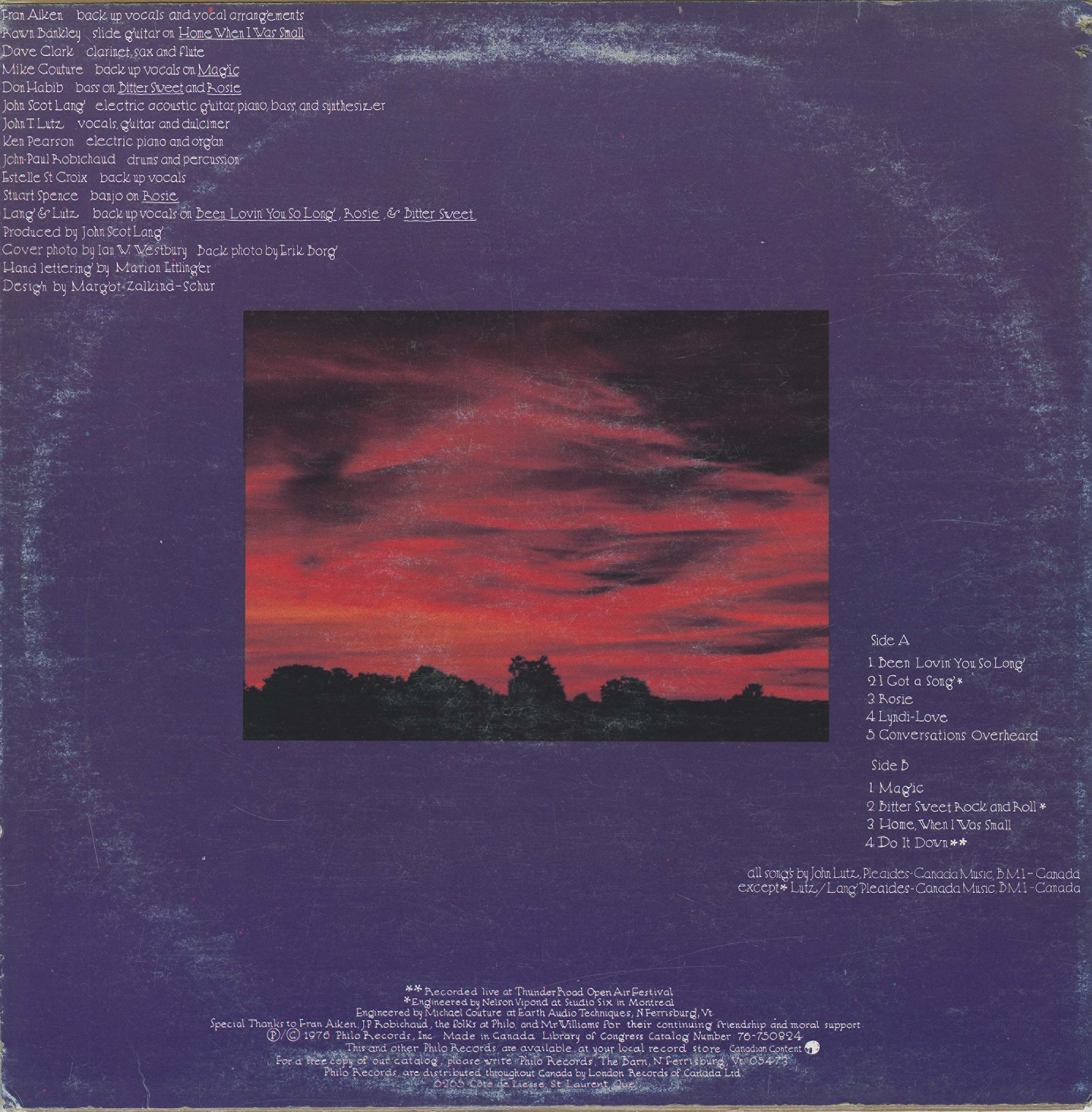John Scott Lang: backing vocals on "Been Lovin' You So Long", "Rosie", and "Bitter Sweet"