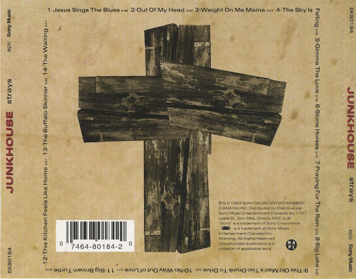 Swampy rhythms, grimy chords, bluesy archetypes, and religious imagery. Some of the material on Strays wanders to the derivative, but Junkhouse really come into their own when this collection of antiques and curios meshes into hypnotic, mutant blues like the raver "Out Of My Head" and the twisted, shuffling riffs of "This Old Man's Too Drunk To Drive." A more than solid first foray from one of Canada's hardest working ensembles.