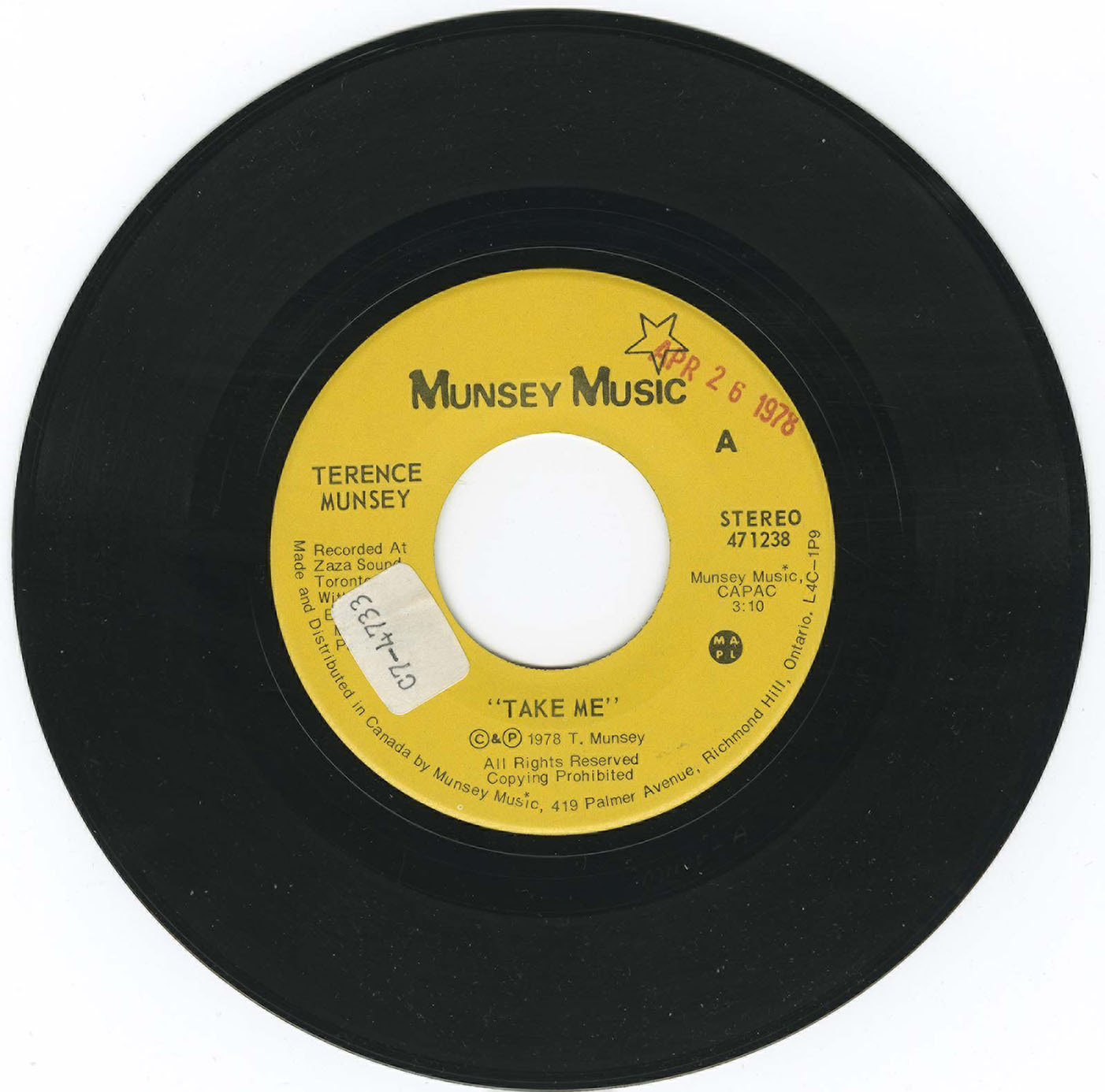 45-Terence Munsey - Ted Went to See bw Take Me VINYL 02
