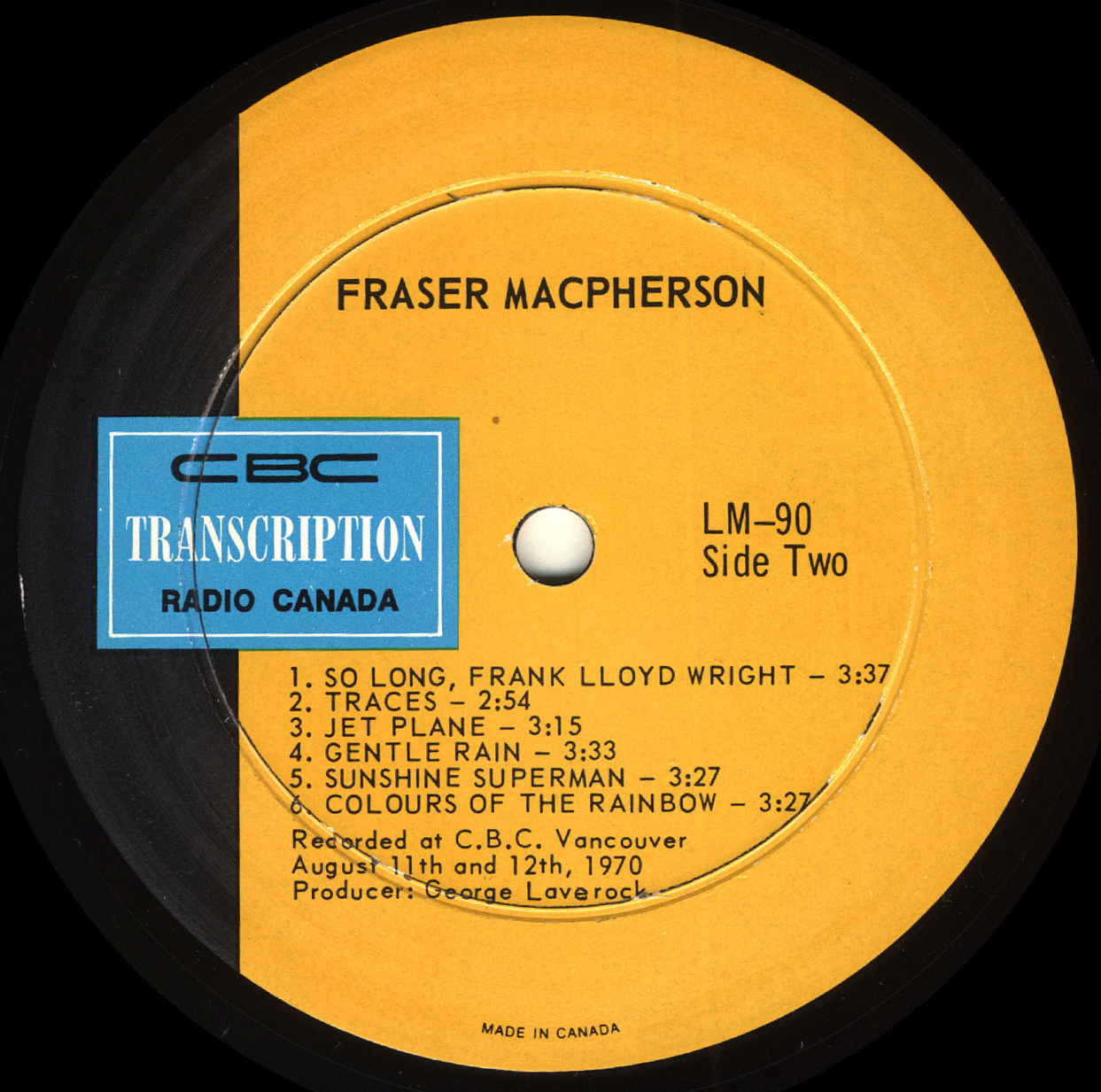 Jazz, CBC Radio Canada LM Series, British Columbia, The Vancouver Jazz Scene, 1970's