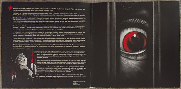 The haunting, dissonant score composed by composer Carl Zittrer (PORKY'S, A CHRISTMAS STORY) makes its release for the first time in any format via Waxwork Records. For decades, the score to BLACK CHRISTMAS never receive an actual official release. The score masters were thought to be lost or destroyed for 40 years. Waxwork Records collaborated with composer Carl Zittrer to research and track down these original masters. After locating them, Zittrer constructed a cohesive BLACK CHRISTMAS film score experience. Full album artwork created by Ghoulish Gary Pullin.
