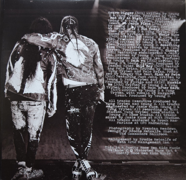 As we chat on the studio couch between rehearsal sessions, Darren “Young D” Metz wears a Nirvana T-shirt and gold chains, his chest-length curly hair tucked into a snapback; Quinton “Yung Trybez” Nyce — armoured in leather, studs and metal — is a futurist mashup of an old-school ’70s punk and a classic ’90s rapper.