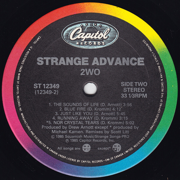 2WO is the second studio album by Canadian new wave band Strange Advance released in February, 1985. It featured two hit Canadian singles, "We Run" and "The Second That I Saw You". Along with their first album, this was a Canadian gold record for the band.