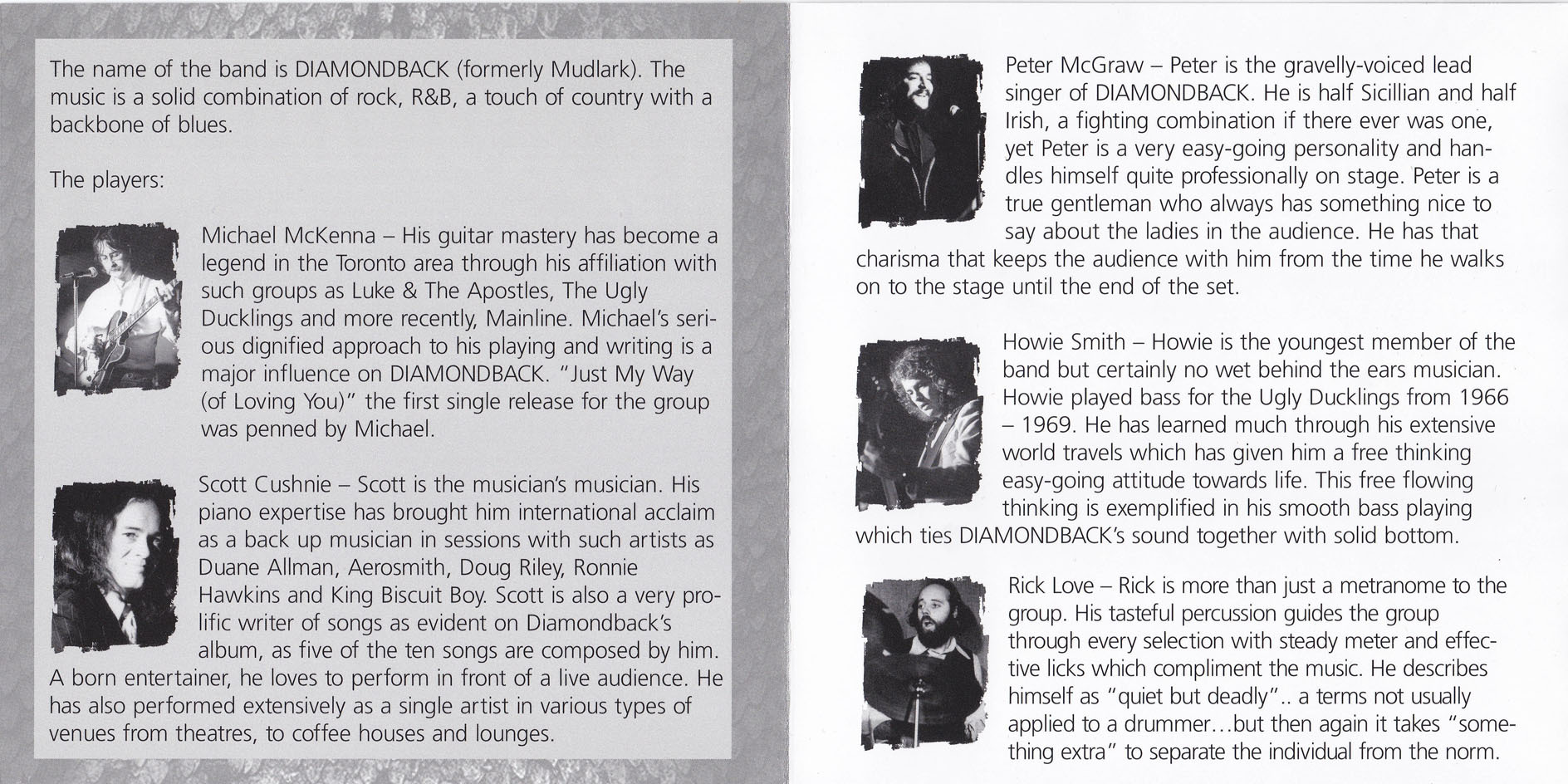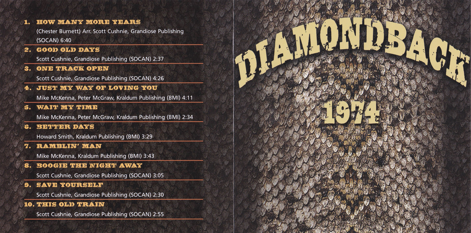 The name of the band is DIAMONDBACK (formerly Mudlark). The music is a solid combination of rock, R&B, a touch of country with a backbone of blues. Diamondback recorded an album for Atlantic Records, but Atlantic only released two singles before scrapping the full LP. Pacemaker Entertainment salvaged the record and issued it in 2008. Scott Cushnie died in August, 2018 and was buried by the wrong family in a bizarre case of mistaken identity.