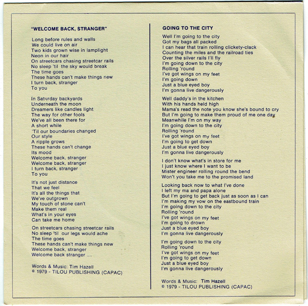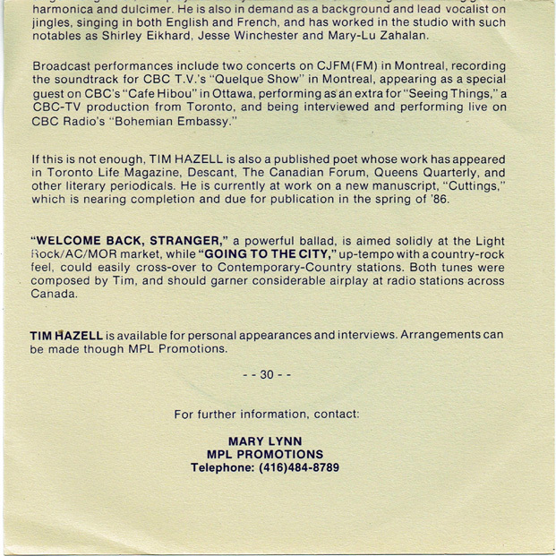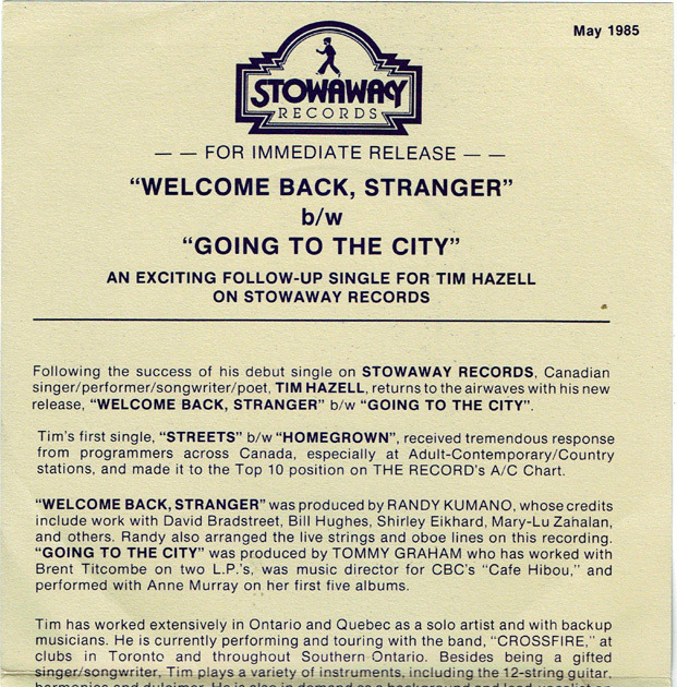 Hazell, Tim - Welcome Back, Stranger b/w Going to the City