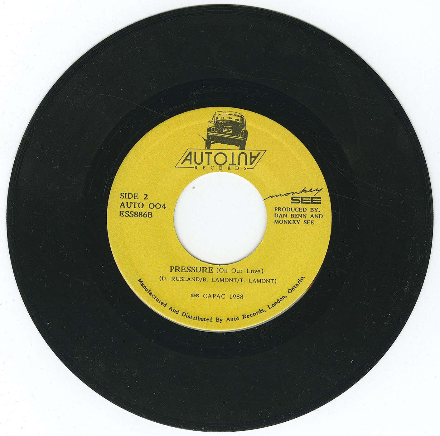 Joining Rusland were Bill Lamont on keyboards and backing vocals, Dave O’Leary on bass, Ted Lamont on guitars, and drummer Bob Roy. Bill Lamont was simultaneously active in other London recording projects, notably the duo Gilded Cage, who themselves won CKSL’s May contest with their Auto Records single Last Time b/w A Feeling I Can’t Hide. His parallel work in Monkey See added another layer of visibility to the Lamont brothers’ presence in the local scene.