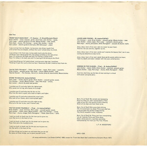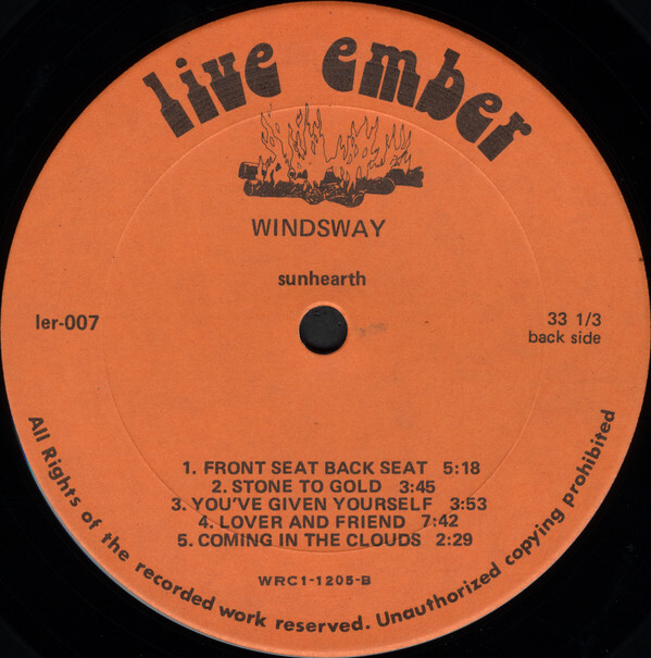 Highly talented Canadian male/female outfit whose custom album excels at a progressive hippie folk-rock style worthy of labels like Flying Fish or Rounder. Just a glance over the instruments in the credits - fiddle, banjo, cello, mandolin, dulcimer, flute, recorder - and you can tell these people are gonna be on the folksy side. All that plus the usual components (acoustic and electric guitars, bass, drums, piano, organ), plus a few “huh?” items (Hawaiian windbell, lapslaps, glass chimes, fogelschwantz, over-tones). Musically they’re quite diverse, including some Scots-Irish folk influences on ‘Promenade’, ‘Coming In The Clouds’, the Richard Thompson-ish ‘You’ve Given Yourself’ and the instrumental title track. ‘Over Waves’, ‘Yesterday, Today, Forever’ and ‘Think On These Things’ are all lovely acoustic ballads with female vocals (the latter also includes a jazzy flute and electric guitar interlude). Blues and bluegrass are sampled for Love Song’s ‘Front Seat Back Seat’, the album’s only cover tune (although three songs are noted as having been adapted from traditional melodies). Moving electric guitar and pedal steel solos embrace ‘Stone To Gold’, a graceful country rock excursion ala The Eagles or America. ‘Lover And Friend’ is a strong nearly eight-minute progressive track that begins as a piano ballad before building to a harder rock edge that includes beautiful use of electric violin. From St. Catharines, Ontario. Attractive tree cover painting. A really great record - some of the most skillful, creative and artistic folk sounds I’ve heard.