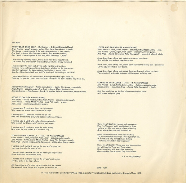 Produced by Larry Andrews and Brian Anders for Live Ember Records