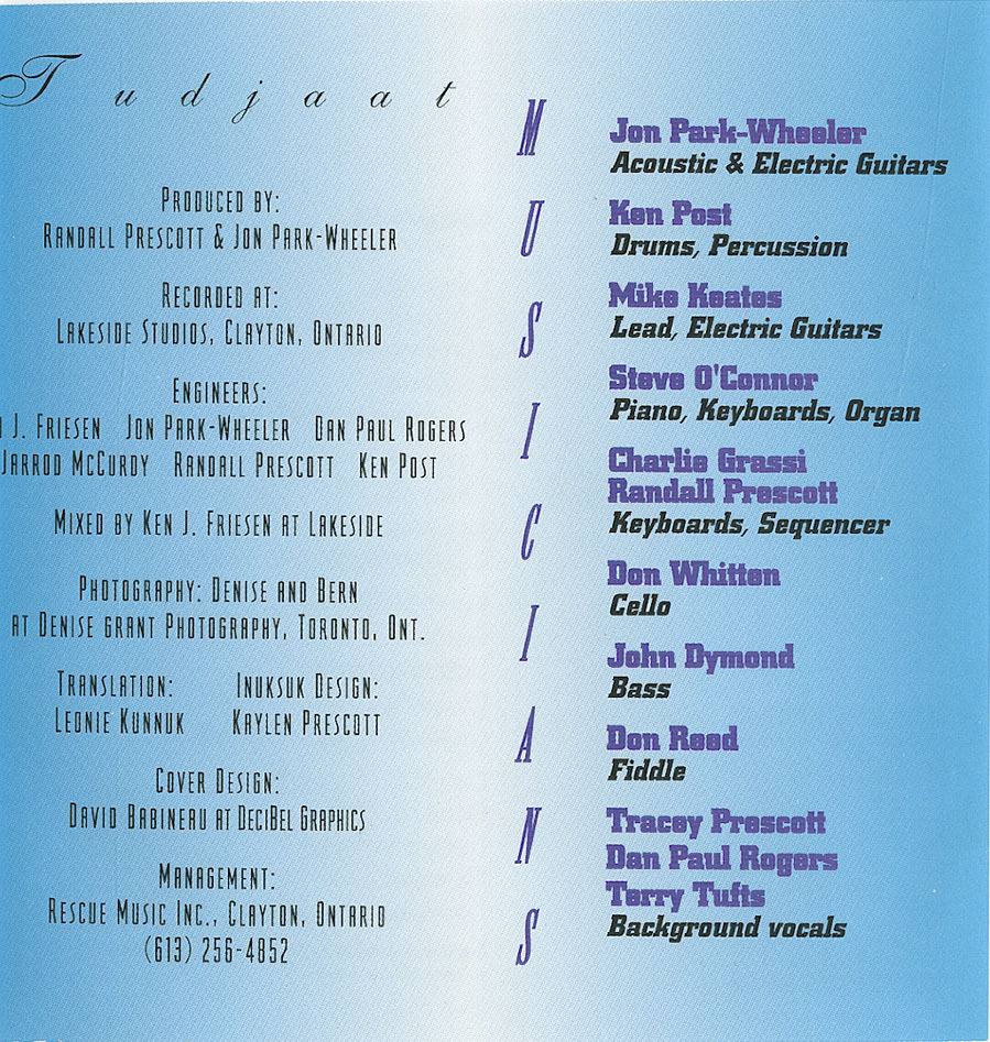 Since that first nationally-televised performance on CBC television’s special “True North” concert, Tudjaat has sung again at the “True North” concerts, in Yellowknife, in Ottawa, accompanied singer Tom Jackson on a whirlwind tour of Germany and done back up for Robbie Robertson.
