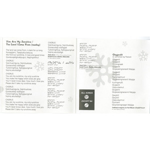 Another song on the CD Tudjaat released in 1995 is a medley of the familiar Southern song “You are my sunshine” and the new “The Land that I come from,” sung in both English and Inuktitut.