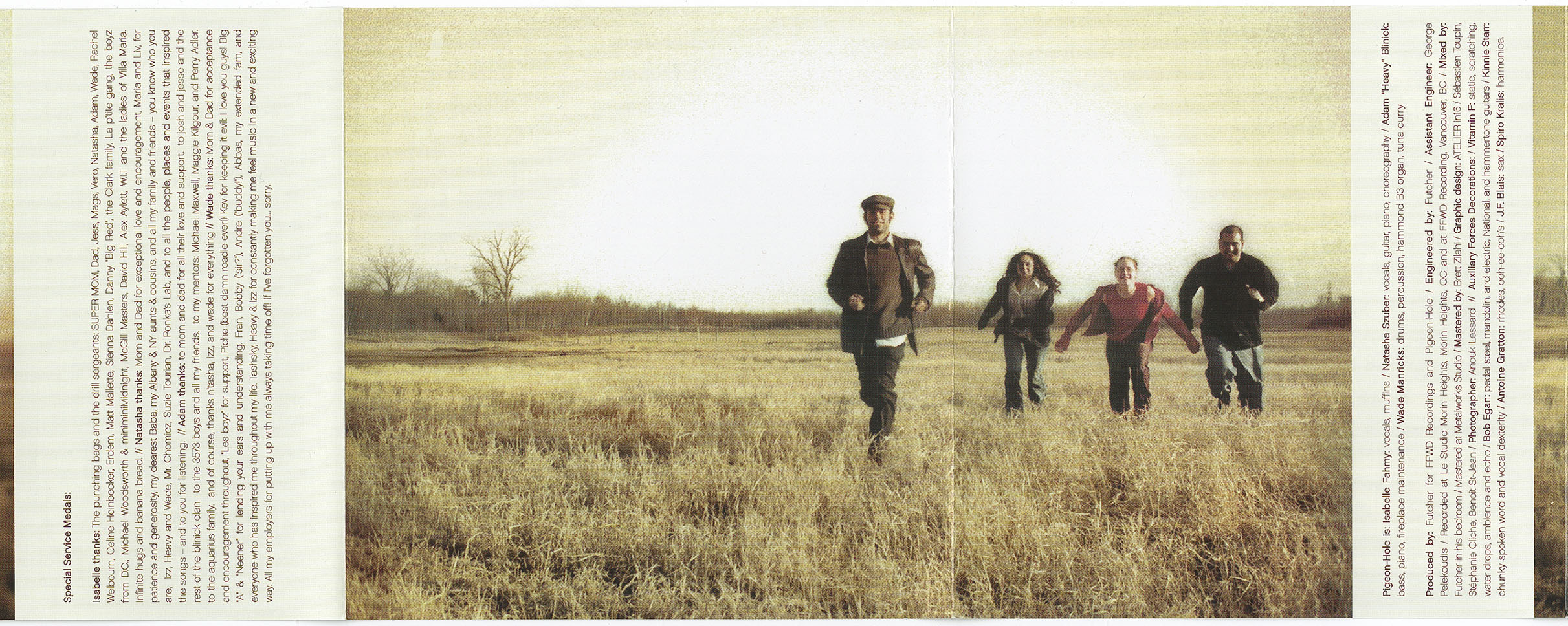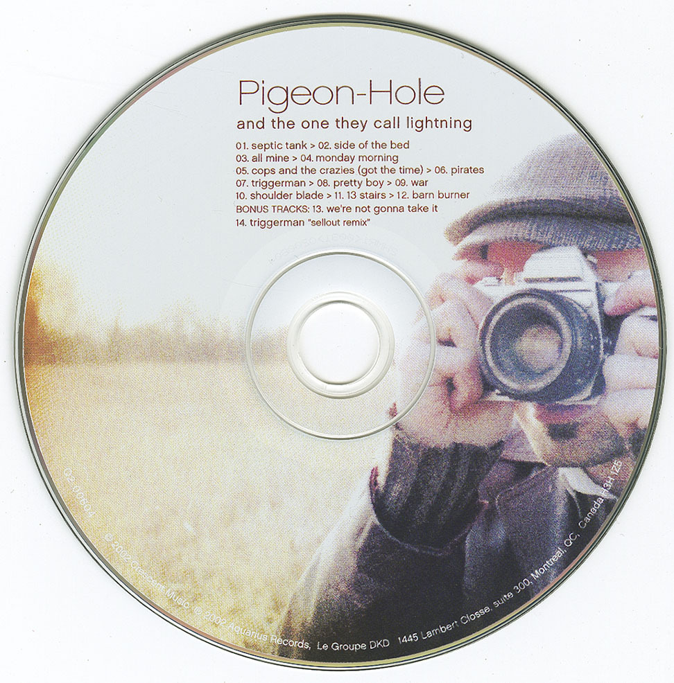 Too Tall & CHOM FM, the gals at CKUT, MIX 96, CBC, campus radio stations across Canada for playing a little too much Pigeon-Hole, all Canadian Indie music websites and e-zines who supported us, Rich Belson and the Chronicle, Jamie at Hour, T’Cha at the Gazette, Mirror, McGill Tribune and Daily, Exclaim, Jen Kalman, Rogers Daytime TV, City TV, Global and anyone in the media who were too thick to mention and a big thanks: Folks at FACTOR, Bill SOCAN, Luc des Hales and Thierry Carrier, Orlé and April at Yellow Door, Blue Door, Maurice at Swimming, Perry and all at Clydes, Doug and the St-Anne’s Office, Dom at Jupiter Room, Matt Wodling, Brent Charbonneau, Duncan Blair, Nancy and Greenland, Rubin Fogel, folks at HOB, Mike at Stomp, Rob Ziffarelli at Paquin, and Mandy for the advanced. All at QAA, Marianopolis, and McGill for your encouragement. Lorraine Albert and her merry band of wackos, Eric Spiro and the Dagwoods family, Jess Stein for “Marmaduke,” John B (greasyhair films), the Lennoxville crew, all at the Kingston Common Ground, Elie and Andrew Swan, Adrien Katz, Sara Neufeld, Rich Belson, Kelly Nestruck, Fannie Turignan and VioletZ, B. Gluckman, Tim Colby, Shawn Fish, Vero, Luc for the studio, and Steve’s The Cuches Tard (for those who don’t know us). Benson Hotel and Neil’s twins, Enlo (virtual production credits), Glenn Fidditch, dgGarth, Fisher Price, Village des Valeurs, Tim Hortons and George’s, caps staples, melini melini melini, and beer because it was the best of times, it was… Most of all, thank you to all the listeners, concert-goers and champions big and small for believing in what we do and for celebrating and sustaining us. Thank you. Rock Hard, Rock Cute.
