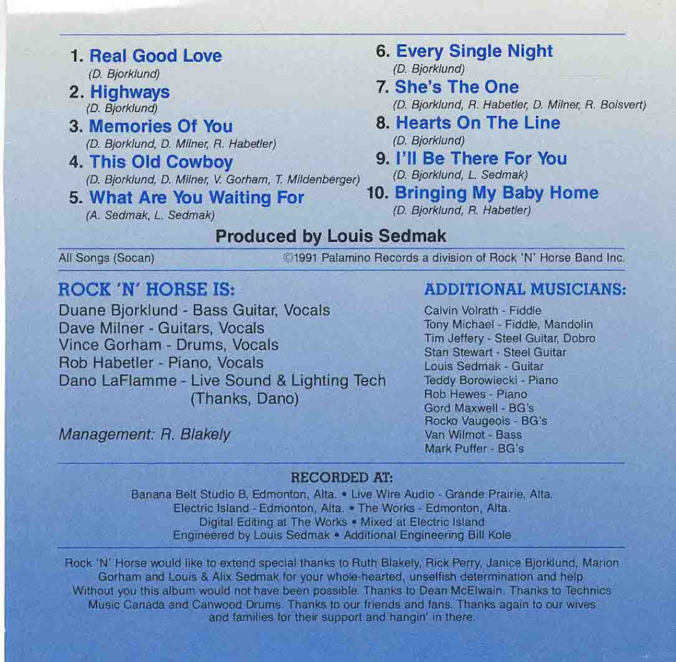Rock ’n’ Horse extend special thanks to Ruth Blakely, Rick Perry, Janice Bjorklund, Marion Gorham, and Louis and Alix Sedmak for their wholehearted, unselfish determination and help. Without you, this album would not have been possible.
