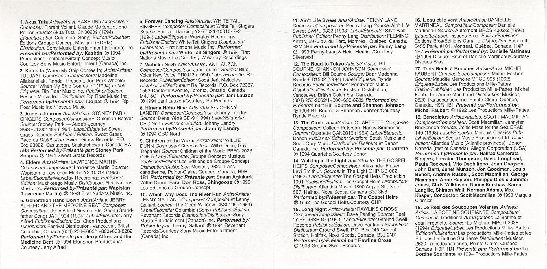 Performed by/Présenté par: Susan Aglukark, Willie Dunn, Fara, Don Ross, Shingoose © 1993 Les Éditions du Groupe Concept