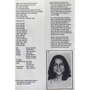 "This music is dedicated to Mona, who died for her belief in the oneness of humanity."