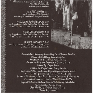 DIZZO RANKS: To God for guiding me in the right direction, my mother (this is dedicated to you) for being both mother and father to me. To Constance, Valarie, Jacinta, Alston, Avian, and Jr., Avary. Love to all of you. To the crew (Live Large), The Antigua Posse in Potters, Jersey City, New York (ak rudeness mek me). The Jamaican posse: Smile, Kellegs, Deo, Delroy, Lexly, my man Winkie, Streak, Vaal, Censor, Traiter, Nick, Richard, Tony B, La Love, Bev, Donna, Truman (Big up). Rude gal-posse, Natasha, Mrs. Leonard, Ma. Ogal tree, nuff respect. To all the Bounty Hunters and to all my boys (you know who you are). Middle finger to Tara, Monica, Jere, Johnny Jett, Warehouse, Waves, Starship. But if I forgot anyone, sorry. Get ya next time. Dizzo out... like Bush.