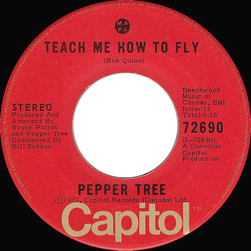 Released in February 1973, this was Pepper Tree’s sixth single, and the first to be fully credited as produced and arranged by the band themselves in collaboration with Wayne Patton. Both tracks are non-album recordings: “Midnight Lady” was composed by Tim Garagan, and “Teach Me How To Fly” by Bob Quinn, reflecting the band's continued creative output during their final phase under Capitol.