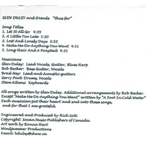 Glen Duley: lead vocals, guitar, blues harp