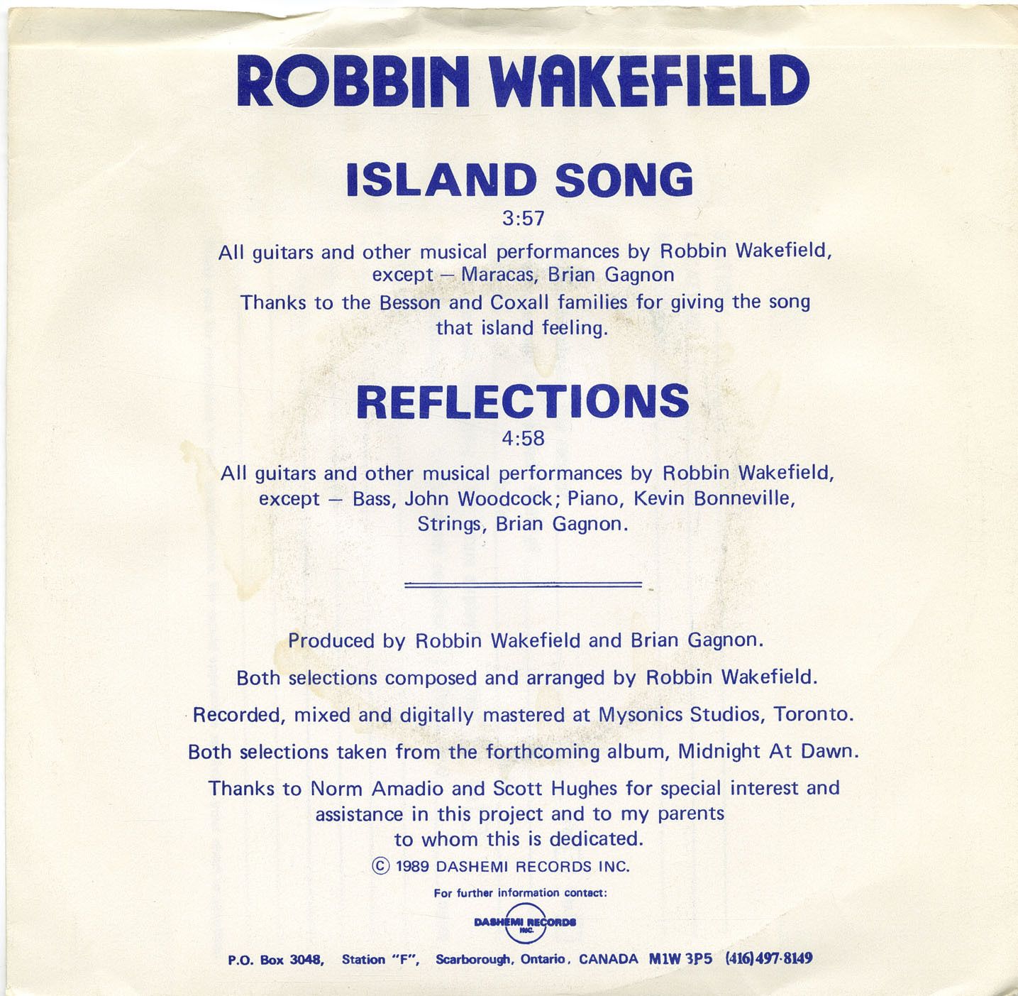 Wakefield, Robbin - Island Song b/w Reflections