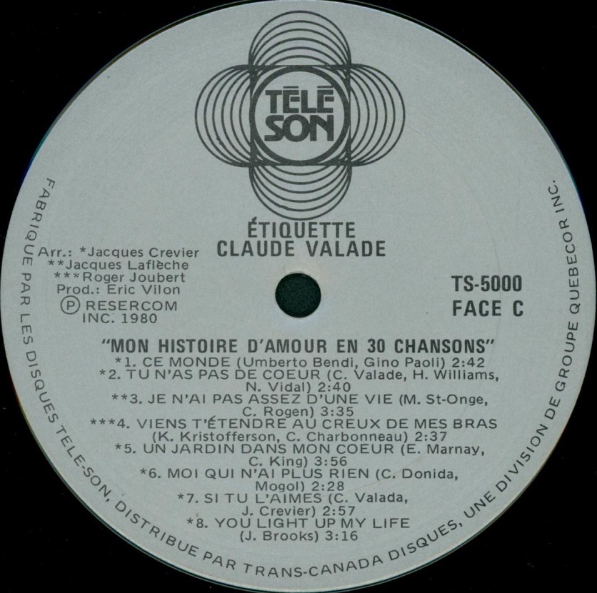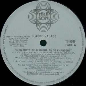 Valade, Claude - Mon histoire d'amour en 30 chansons (2 LP)