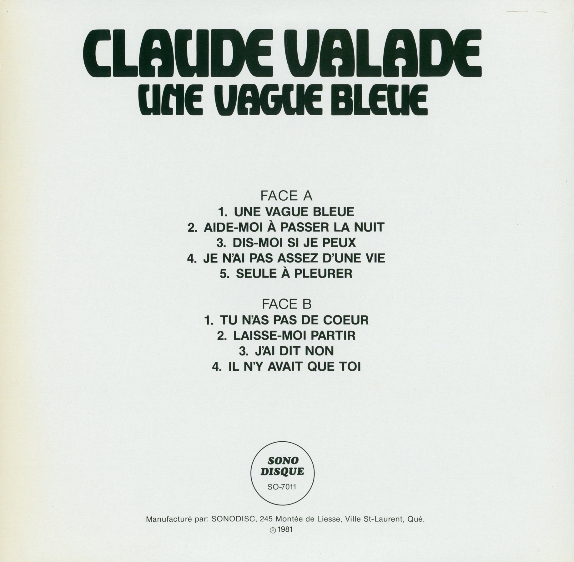 Label: Sono Disque SO-7011
